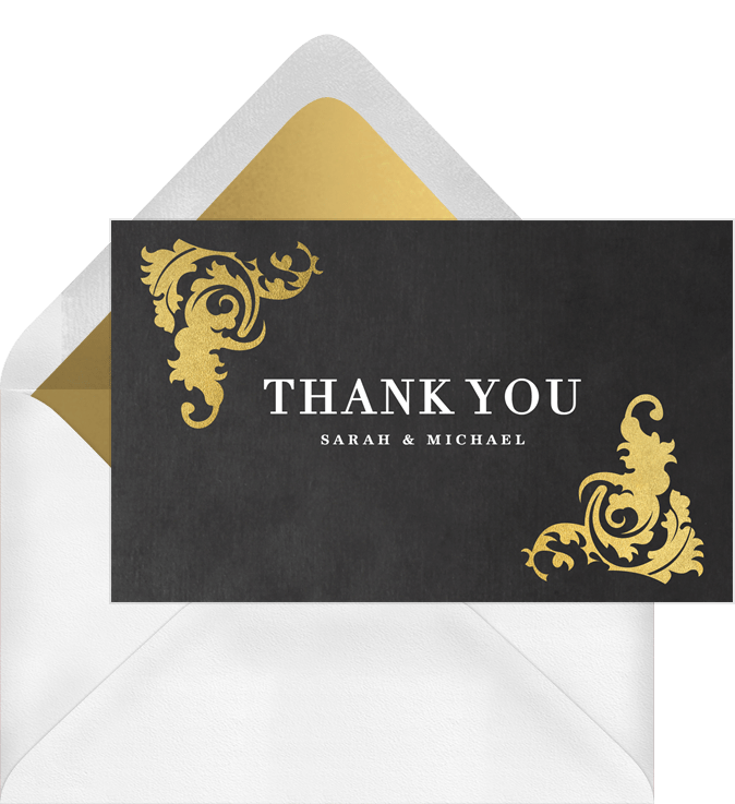 Ornate Gold Corners Thank You Notes In Black Greenvelope Com